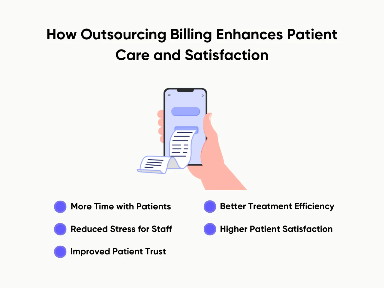Meanwhile, in-house staff can focus on improving other areas of the practice, such as patient care and operational efficiency, highlighting the benefits of outsourcing medical billing. As a result, staff can direct their attention to critical tasks, boosting productivity and allowing providers to allocate resources where they are most needed.