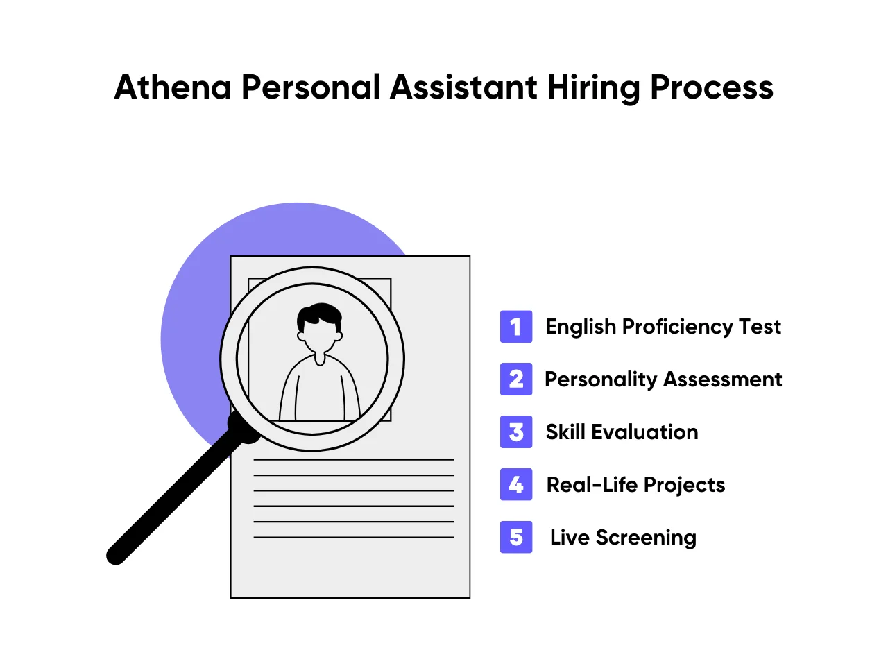 Athena’s hiring process is designed to select the best candidates for supporting clients. Here's a clear breakdown of each step involved in hiring an Athena executive assistant: