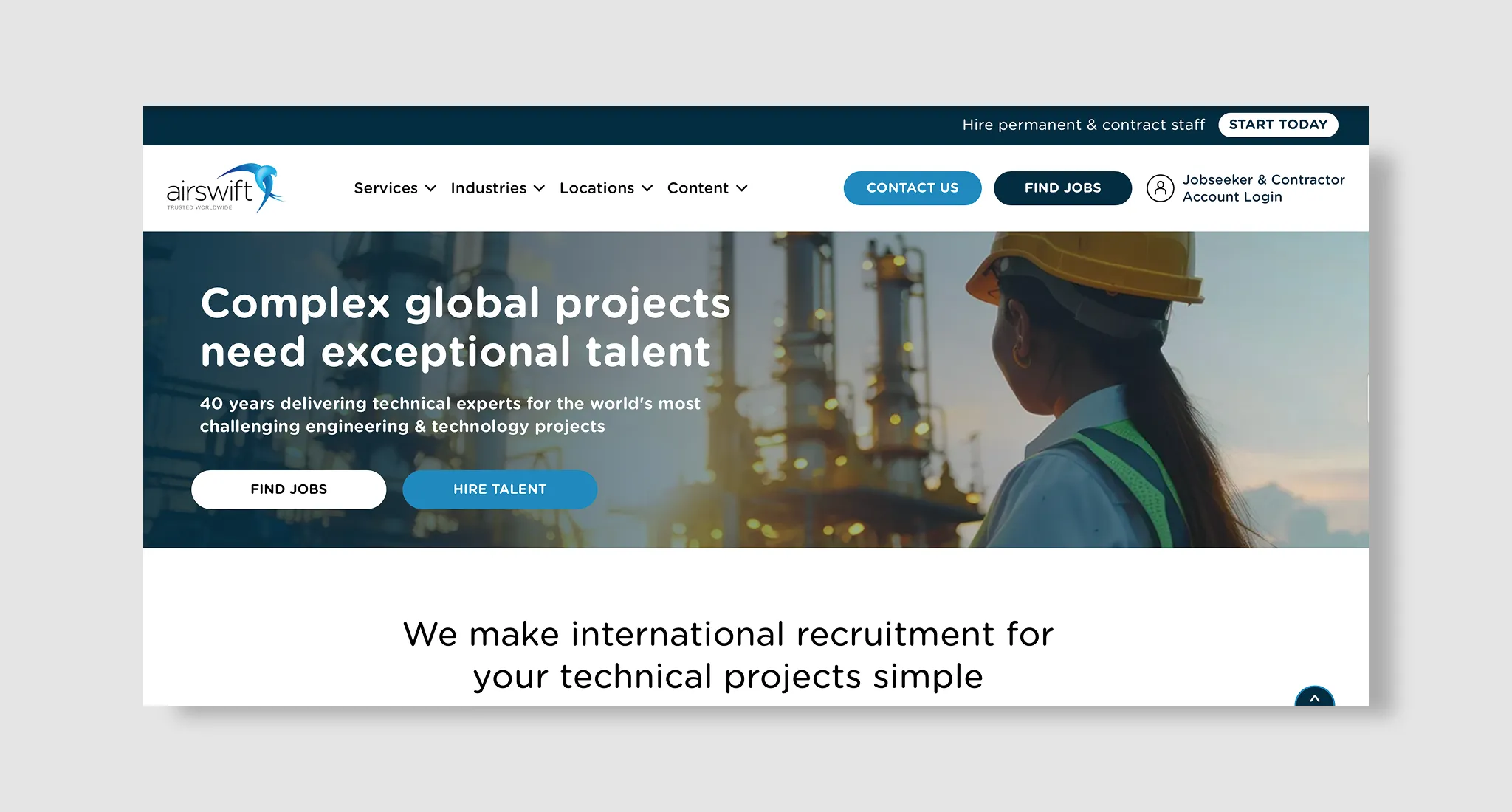 Specializing in oil and gas exploration, renewable energy projects, and critical infrastructure development, Airswift operates across 60+ countries with deep expertise in roles like drilling engineers, project managers, and cybersecurity specialists for industrial systems. They maintain databases containing over 800,000 pre-screened professionals including data scientists with energy sector experience and compliance officers familiar with international safety regulations, to name a few.