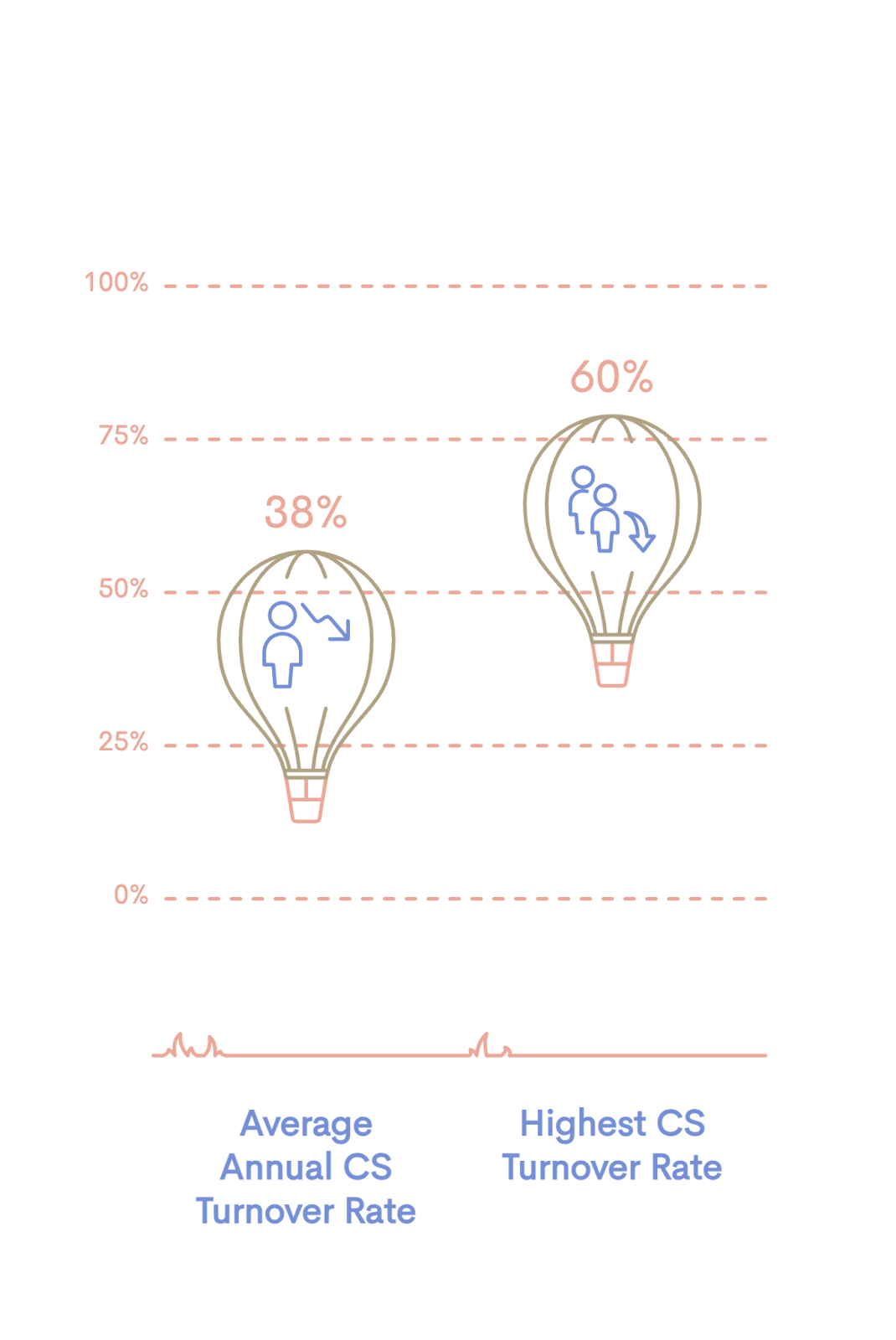 Call center turnover isn't changing any time soon. Having your staff float in and out of positions is part of this line of work. In fact, customer service turnover averages 38% annually, with some centers seeing rates as high as 60%. Those who decide to stay usually only stick around for 15 months.