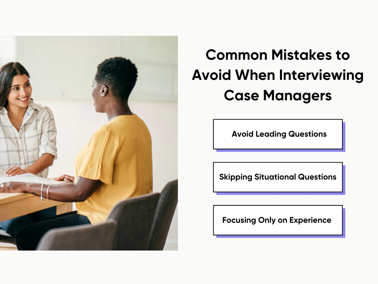 Avoid common mistakes, such as asking leading case management interview questions or skipping situational scenarios. Pay attention to their responses and how they align with your organization’s values and needs. With the right approach, you can identify top talent and make a confident hiring decision.