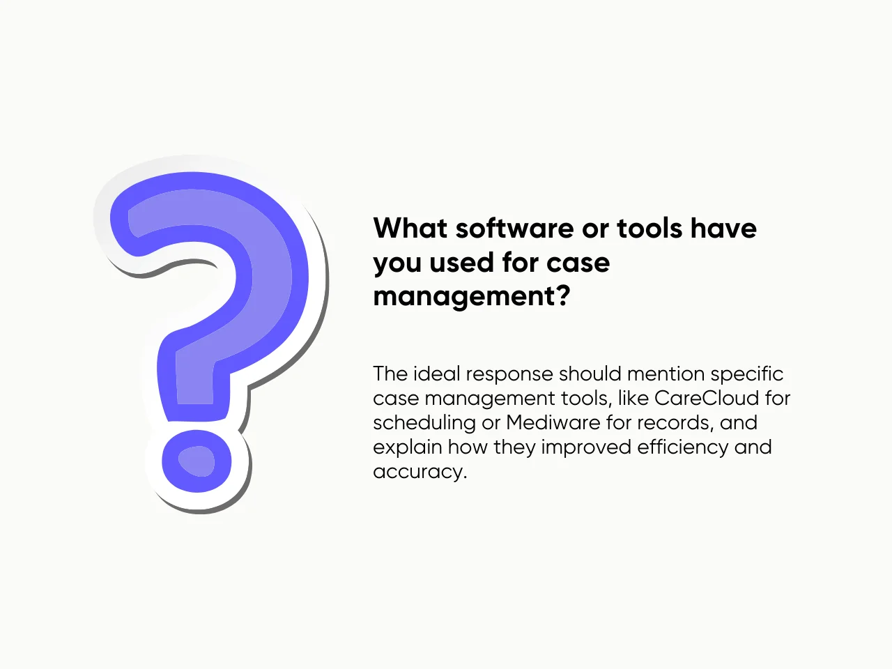 The ideal response for this case manager interview questions should mention specific case management tools they’ve used and their purpose. For example, CareCloud might be used for client scheduling, while Mediware aids in managing healthcare records. Candidates should also explain how these tools enhanced their efficiency and accuracy.