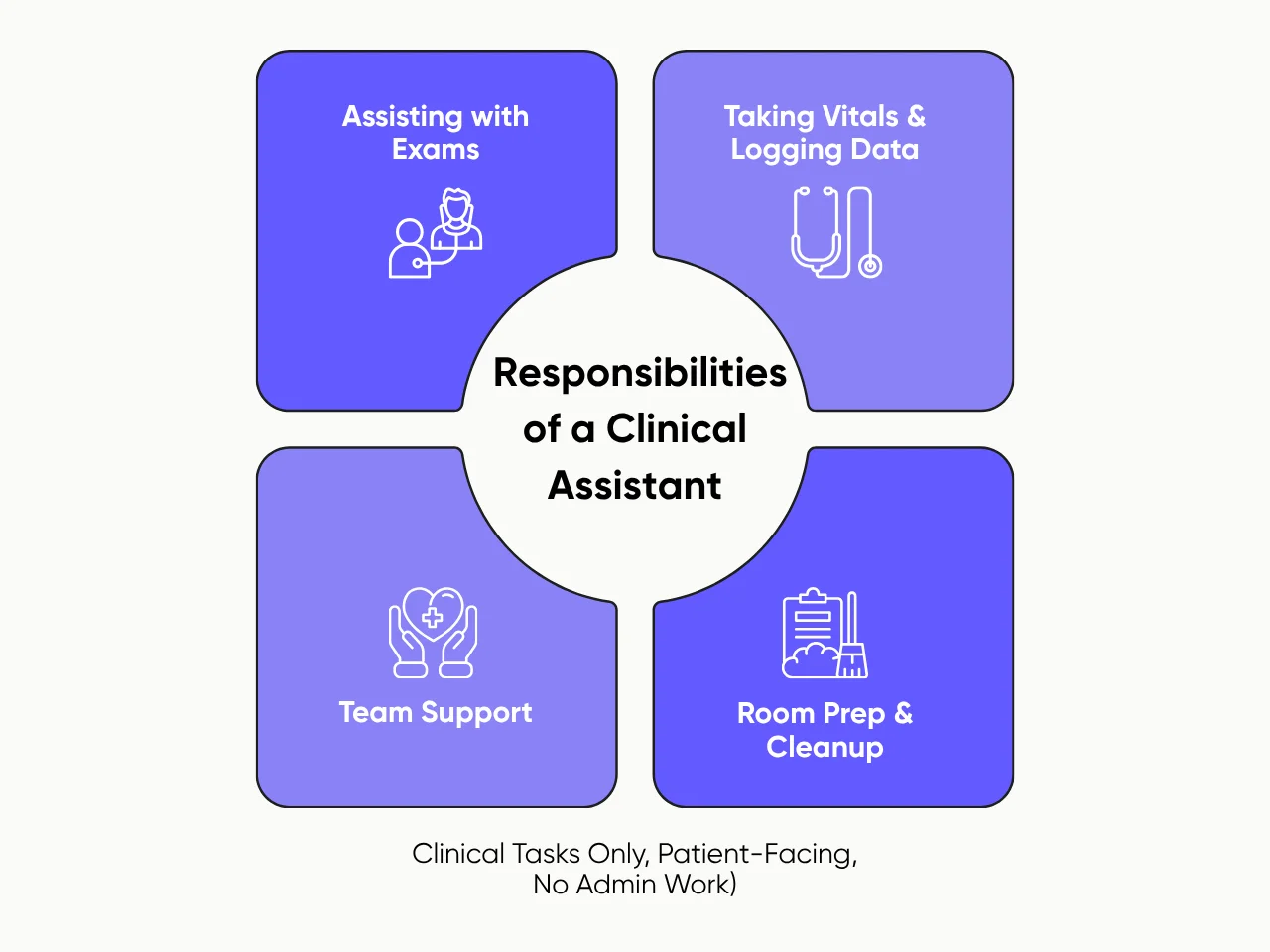 Here’s what most clinical assistants handle on a day-to-day basis: