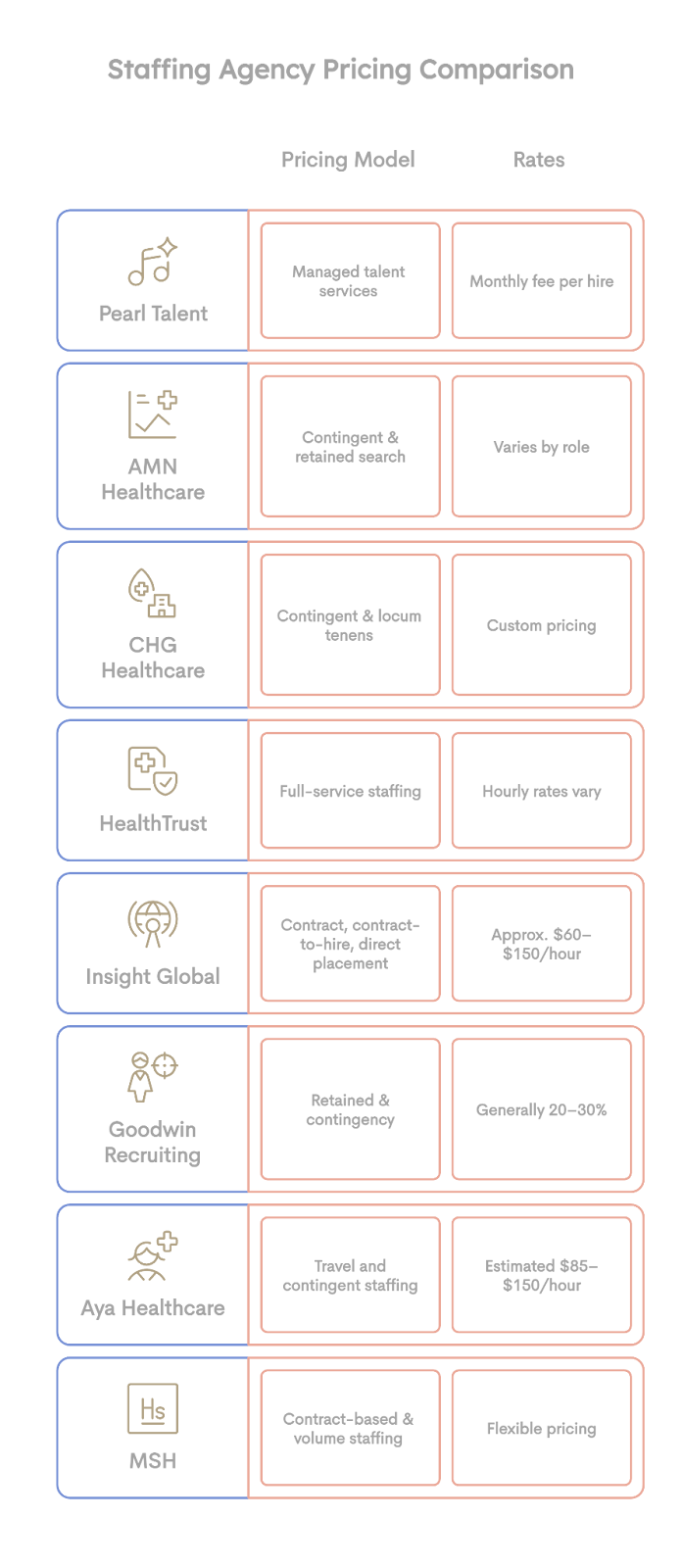 Healthcare organizations are managing tight margins. Agencies with opaque pricing, surprise fees, or rigid long-term contracts create financial risk. Look for partners who offer clear pricing structures, flexible engagement models, and guarantees that protect your investment if placements don't work out.