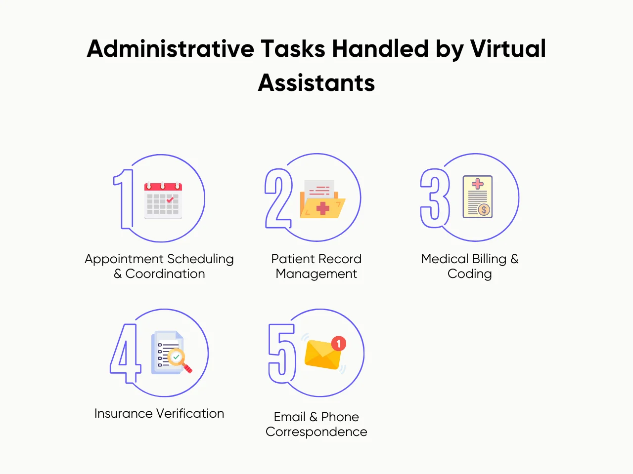 Managing administrative tasks in healthcare, especially in private practice, can be time-consuming and overwhelming. Healthcare virtual assistant companies can help reduce the burden by taking over routine processes. This allows healthcare professionals to focus more on patient care, which is one of the reasons why many healthcare practices hire virtual assistants. Below are some administrative tasks virtual medical assistants usually handle: