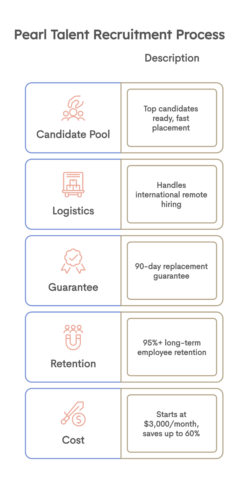 When you’re already drowning in administrative tasks, hiring remote operations staff stops feeling like a solution and starts feeling like yet another item on your to-do list. The solution? Working with a talent acquisition partner like Pearl Talent that manages the complete hiring process for you.