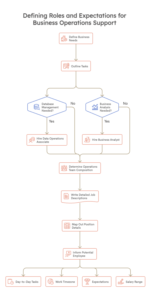 The first step is deciding what kind of operations support your business needs, which starts with clearly outlining the tasks you need taken care of.