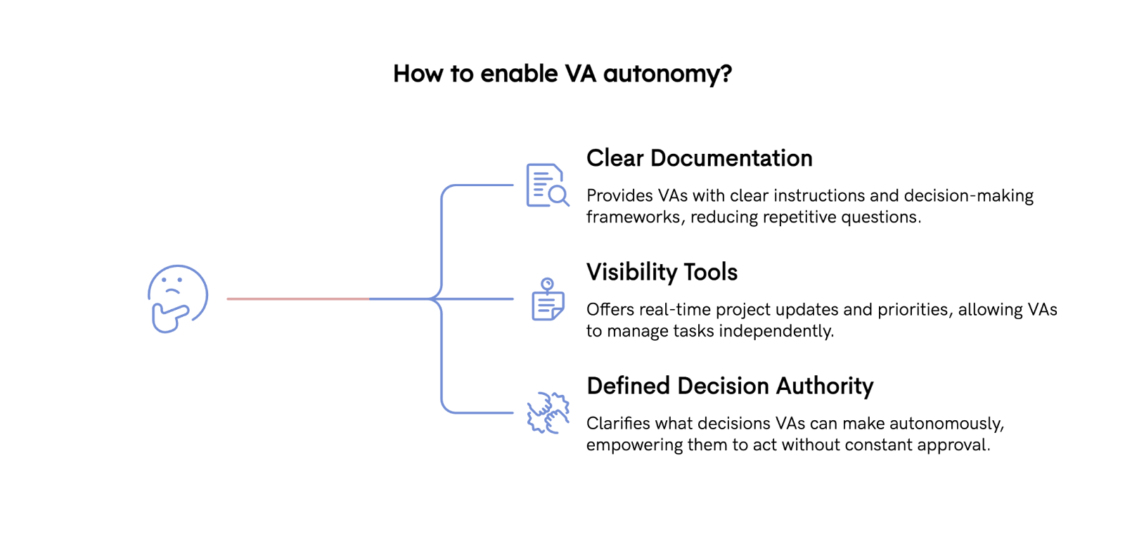 Pearl's approach: We help with onboarding structures that set VAs up for independence from day one, so they integrate seamlessly into your workflows.