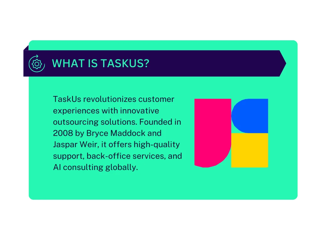 TaskUs is an outsourcing company that revolutionizes customer experiences with its innovative solutions. Founded by Bryce Maddock and Jaspar Weir in Santa Monica, California, they have grown into a global force in the outsourcing industry with offices in the United States, Philippines, and beyond.