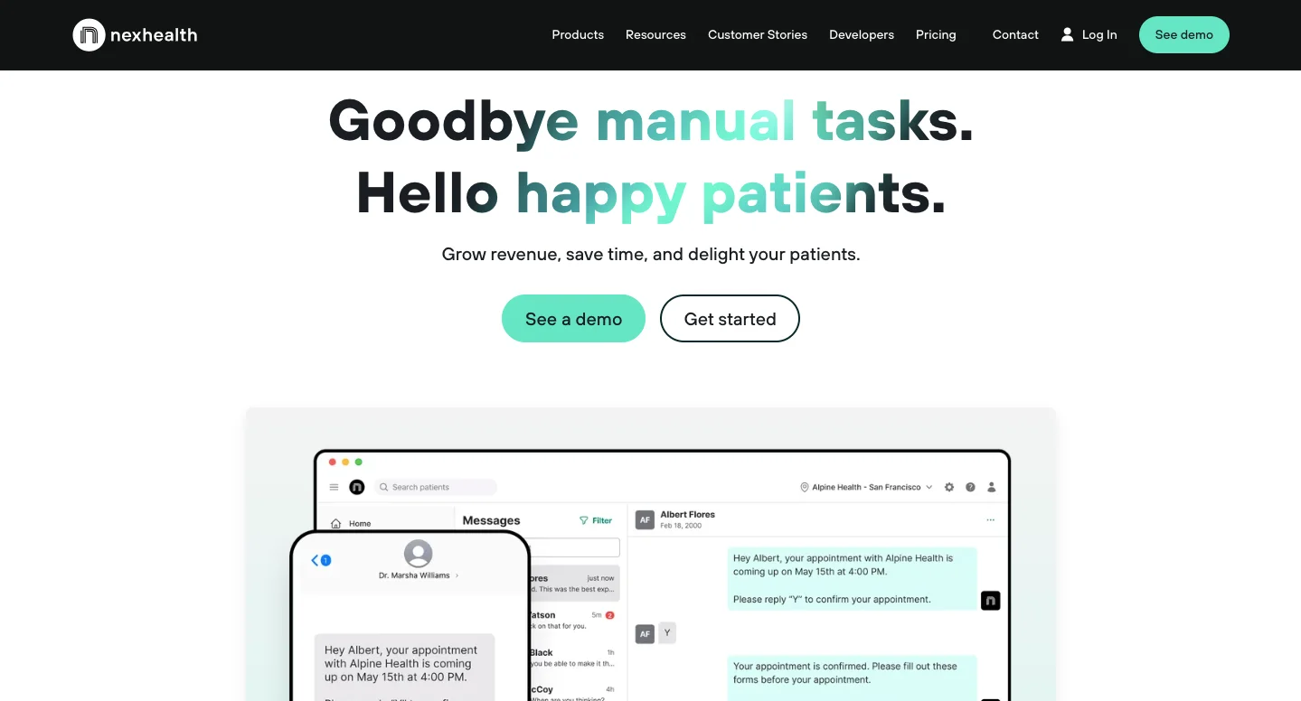 NexHealth is designed to keep practice calendars full without adding extra tasks for staff. It automates appointment booking. You can sync bookings, forms, and messages directly with your health record system so everything stays connected.