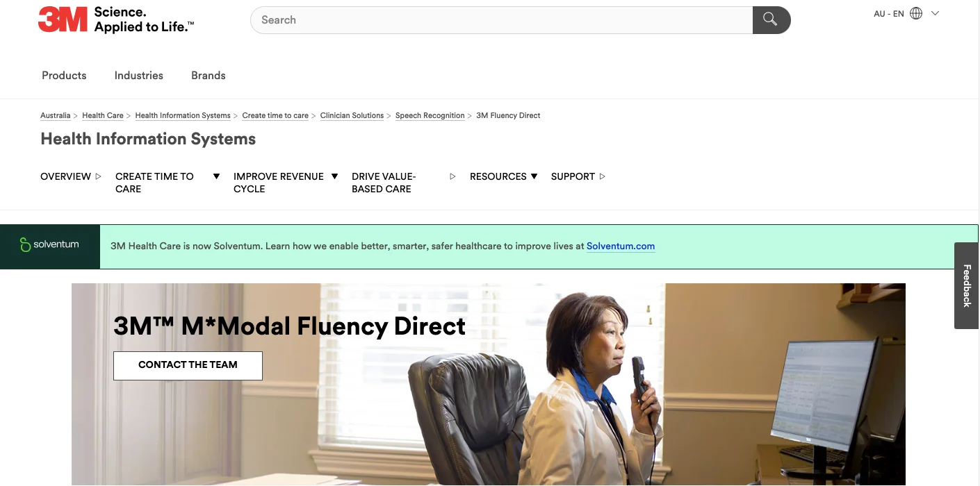 Owned by 3M, M*Modal Fluency Direct is designed for larger enterprise settings: multi-specialty hospitals, healthcare systems, and academic medical centers.
