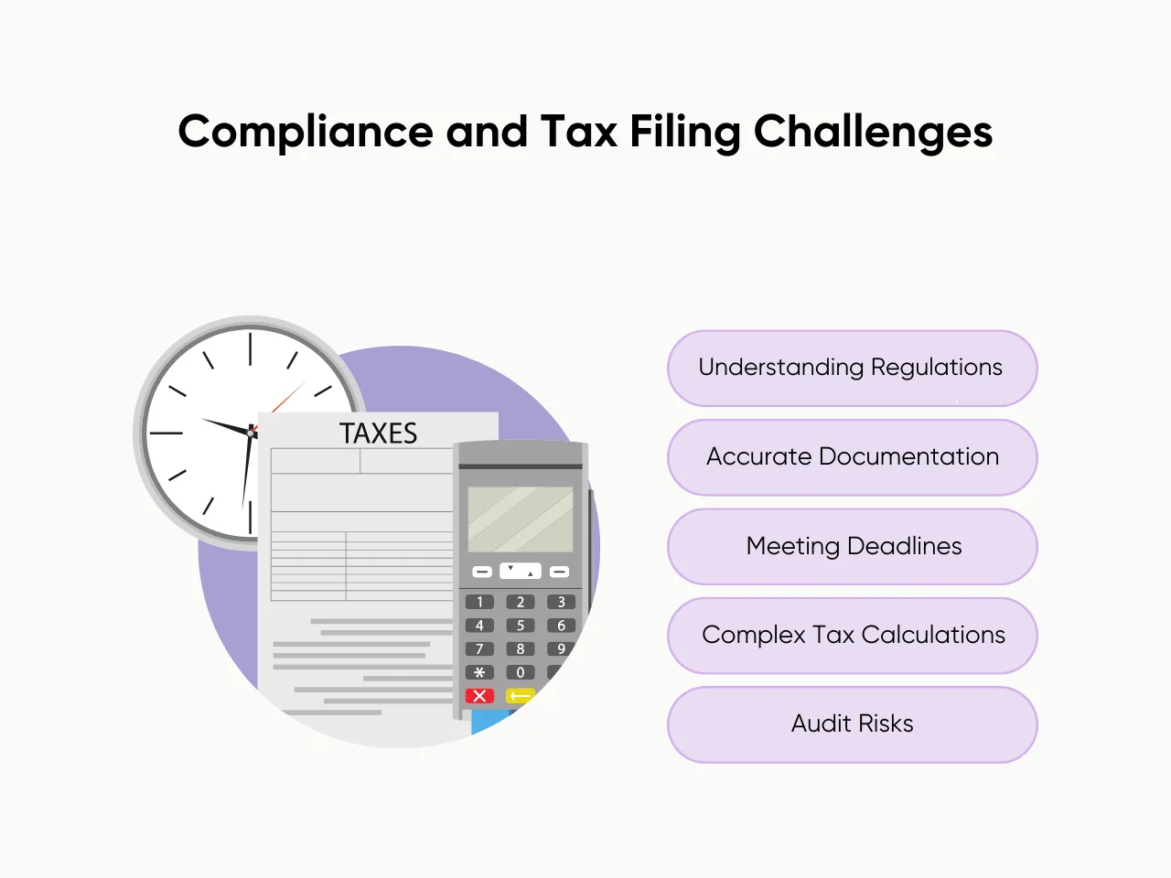 Managing compliance and tax filings for most organizations can be a complex job. Regulations frequently change, and staying up-to-date can only be challenging with dedicated resources like tax preparation services. Missteps related to filing compliance or payroll taxes can lead to penalties and legal issues. Common challenges in compliance and tax filing typically include: