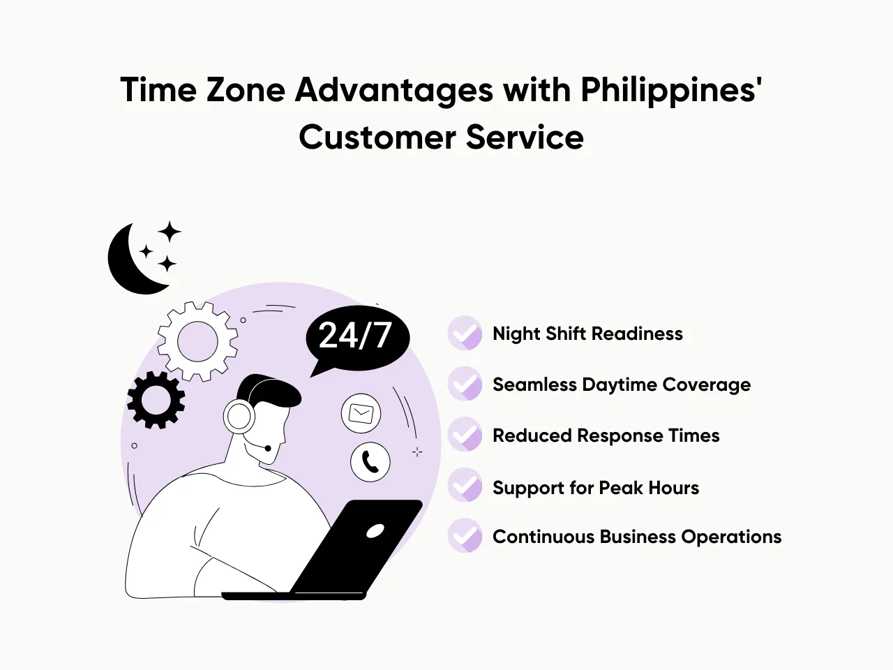 Due to its well-equipped workforce, the Philippines is a prime location for providing 24/7 support and scalable customer service solutions. Here’s how the Philippine's customer service outsourcing excels in providing these benefits: