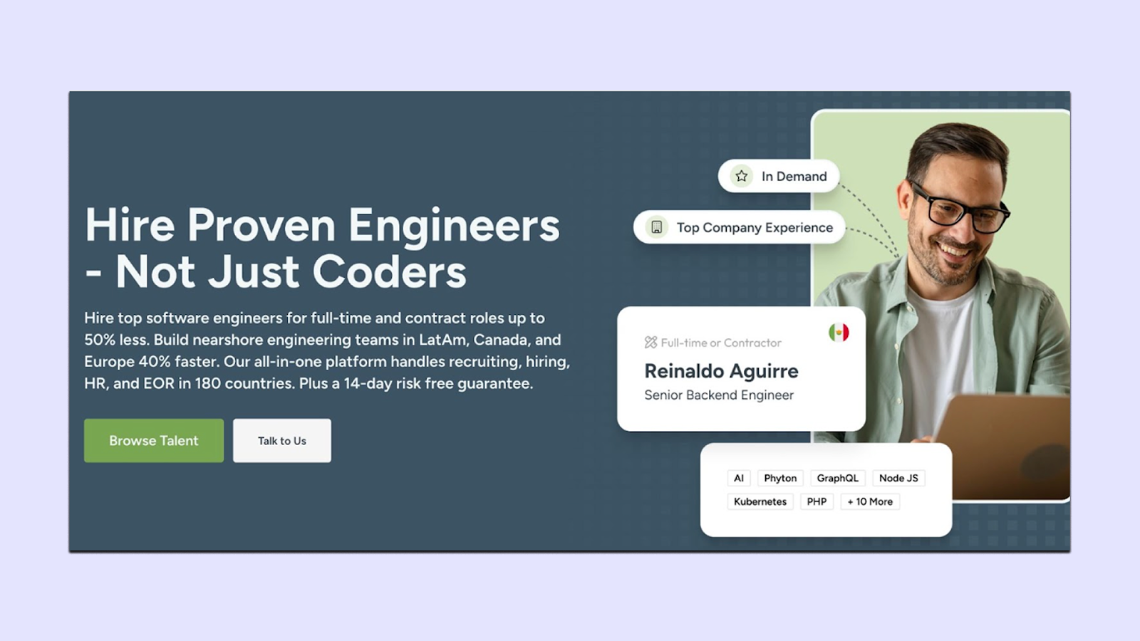 Most hires are positioned as long-term team members rather than short-term contractors, which helps with continuity, ownership, and lower churn. The platform is especially popular with startups and growth-stage companies building distributed engineering teams.