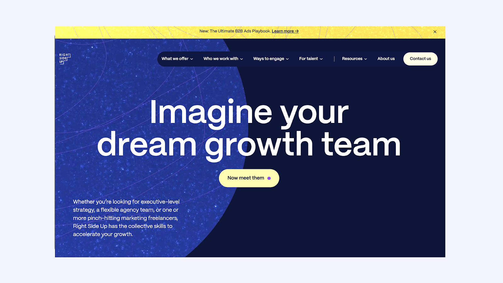 Right Side Up focuses on growth marketing talent, the kind of people who thrive in fast‑moving environments, testing, iterating, and optimizing campaigns on the fly. If you’re trying to drive acquisition and retention without burning cash, they’ll connect you with marketers who know how to hustle smart.