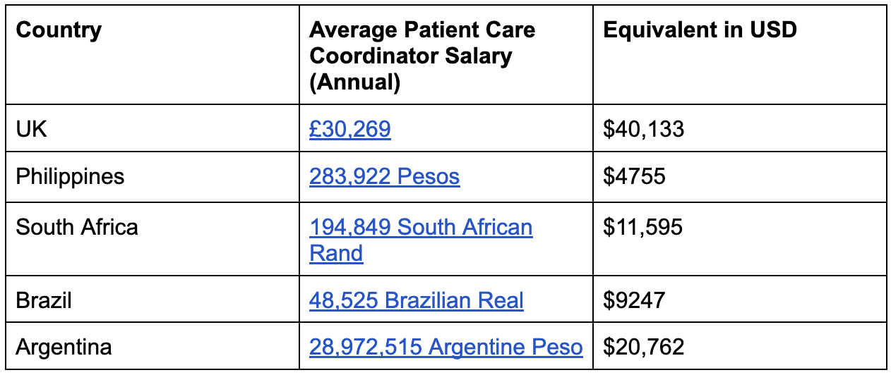 Here’s a look at patient care coordinator salaries in other countries: