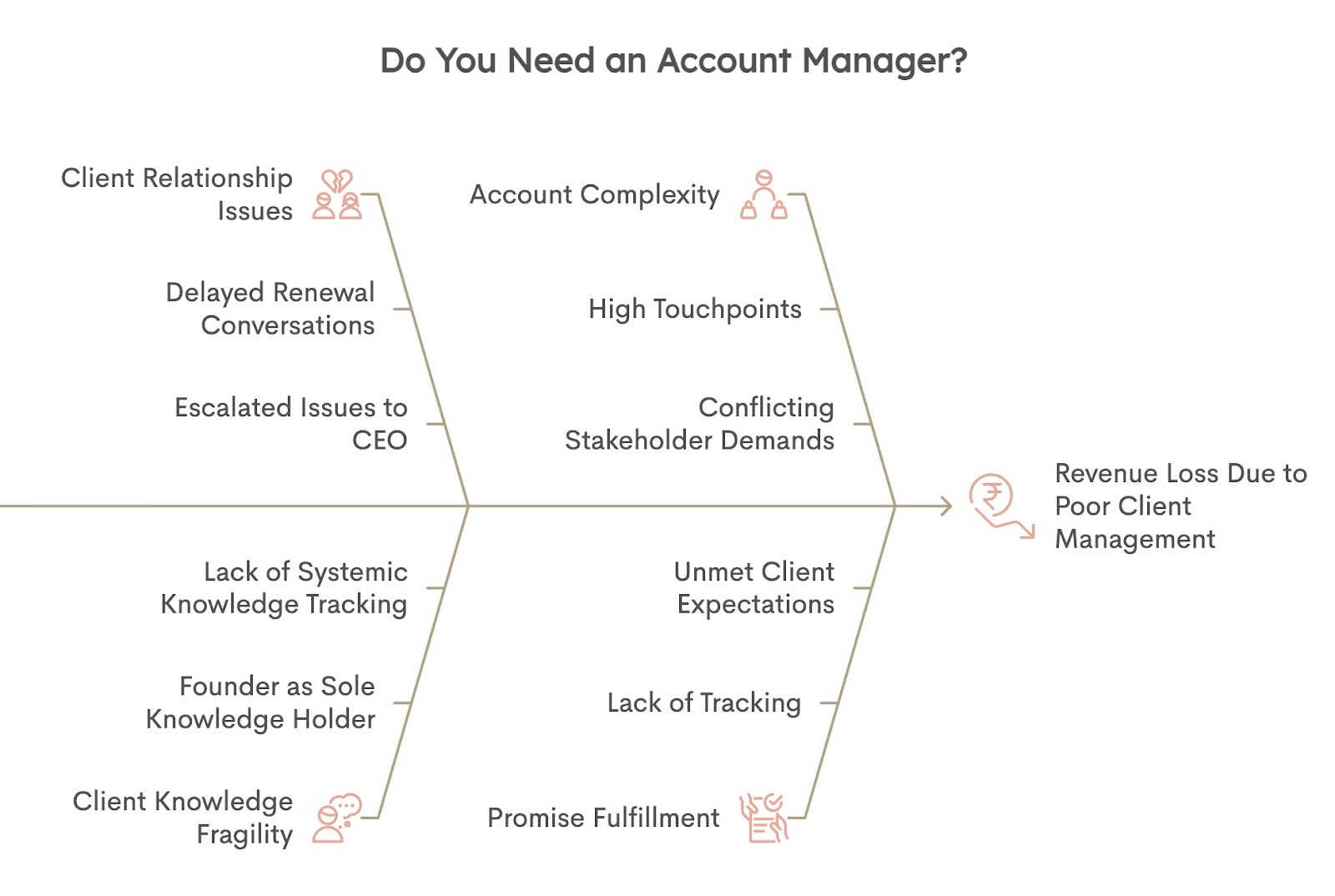 Think about where your client's knowledge actually lives. If your founder is the only person who knows that Client A is frustrated with response times, or that Client B mentioned a budget for a second hire next quarter, that's fragile. One busy week and those details disappear. An account manager turns that into a system instead of letting it depend on someone's memory.