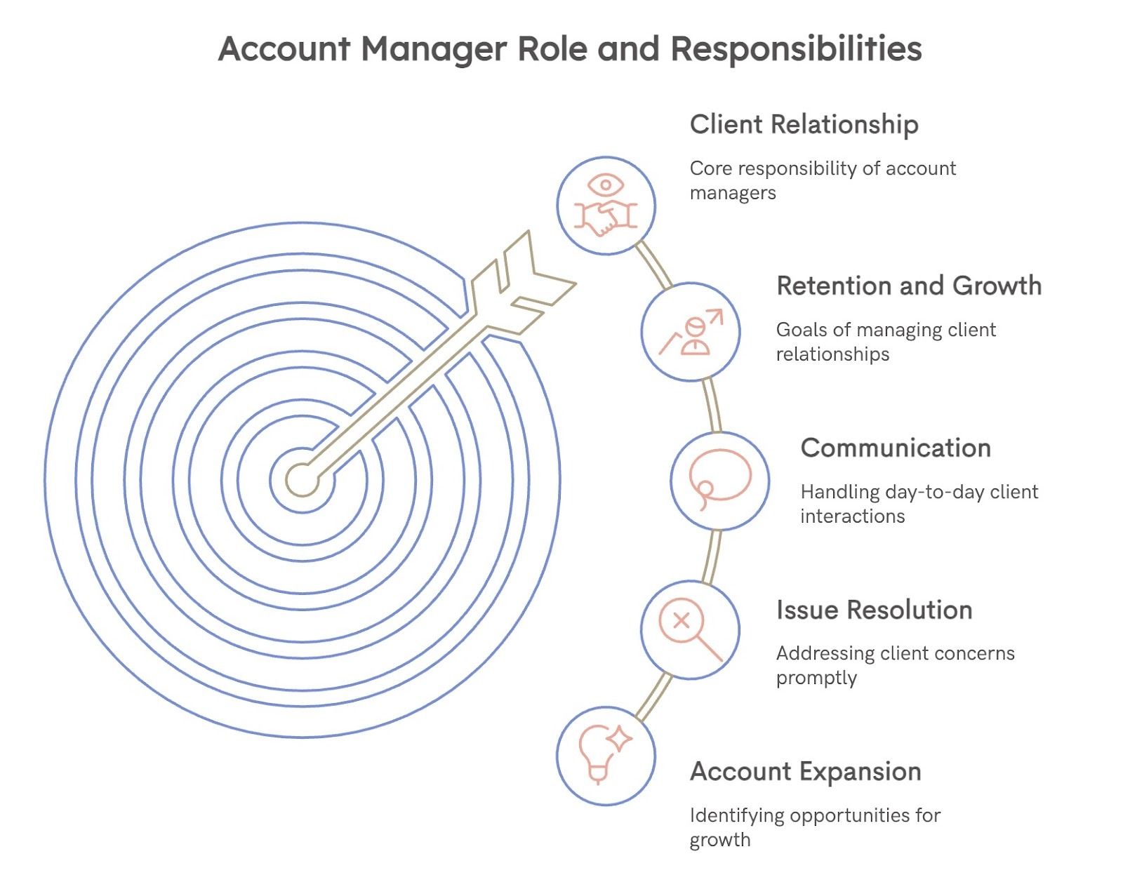 It's worth noting that account managers are different from account executives, even though the titles sound similar. Account executives are typically focused on acquiring new clients. Account managers are focused on keeping and growing existing ones.
