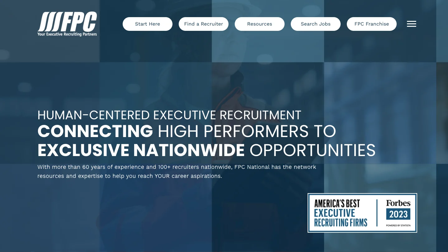 FPC National has over 60 years of experience as an executive marketing recruiter. They operate with a nationwide network of 100+ recruiters, and their deep industry knowledge ensures you work with top talents. FPC is renowned for their extensive connections and commitment to client and candidate success.